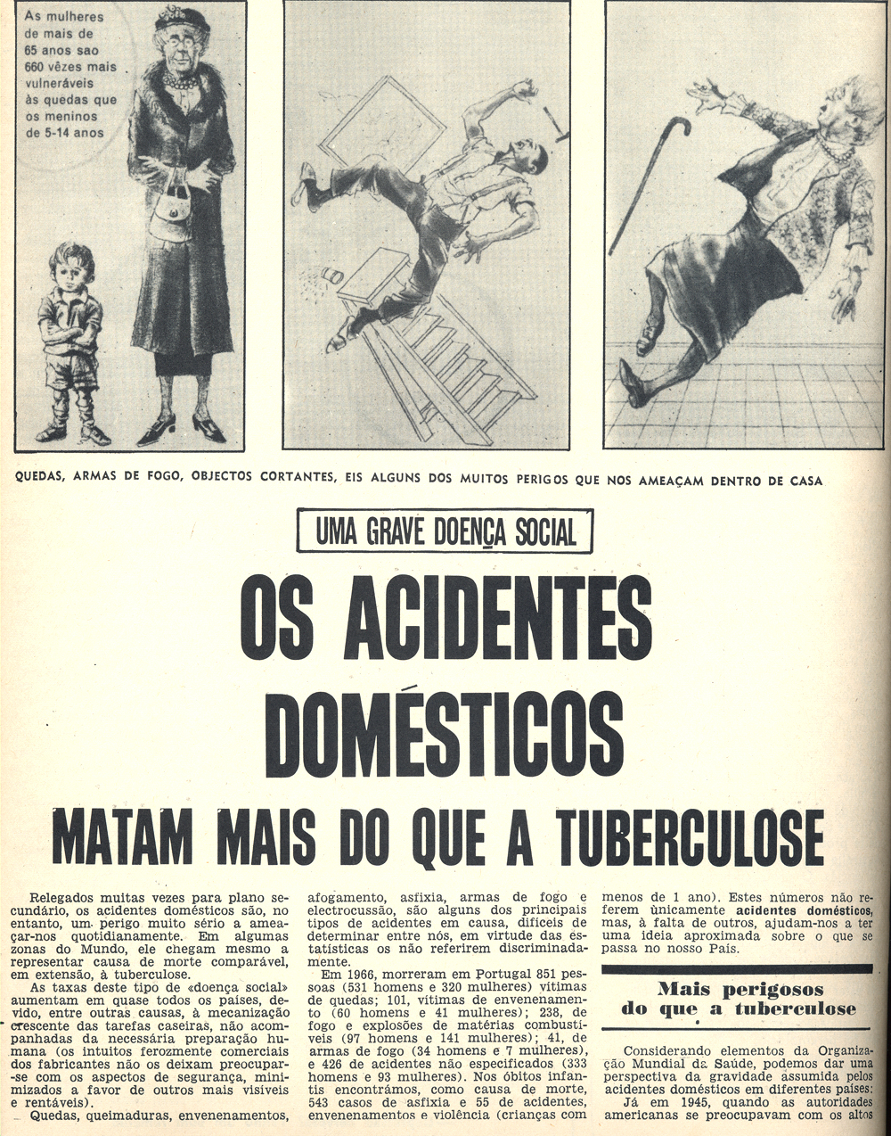 Não é dos dias de hoje, a preocupação com o elevado número de acidentes domésticos. Aqui reproduzimos um interessante artigo que versa este assunto, datado de de 18 de Outubro de 1969 e publicado na revista Século Ilustrado. Baseado em dados da Organização Mundial de Saúde, aborda em detalhe alguns aspectos ligados à segurança infantil.