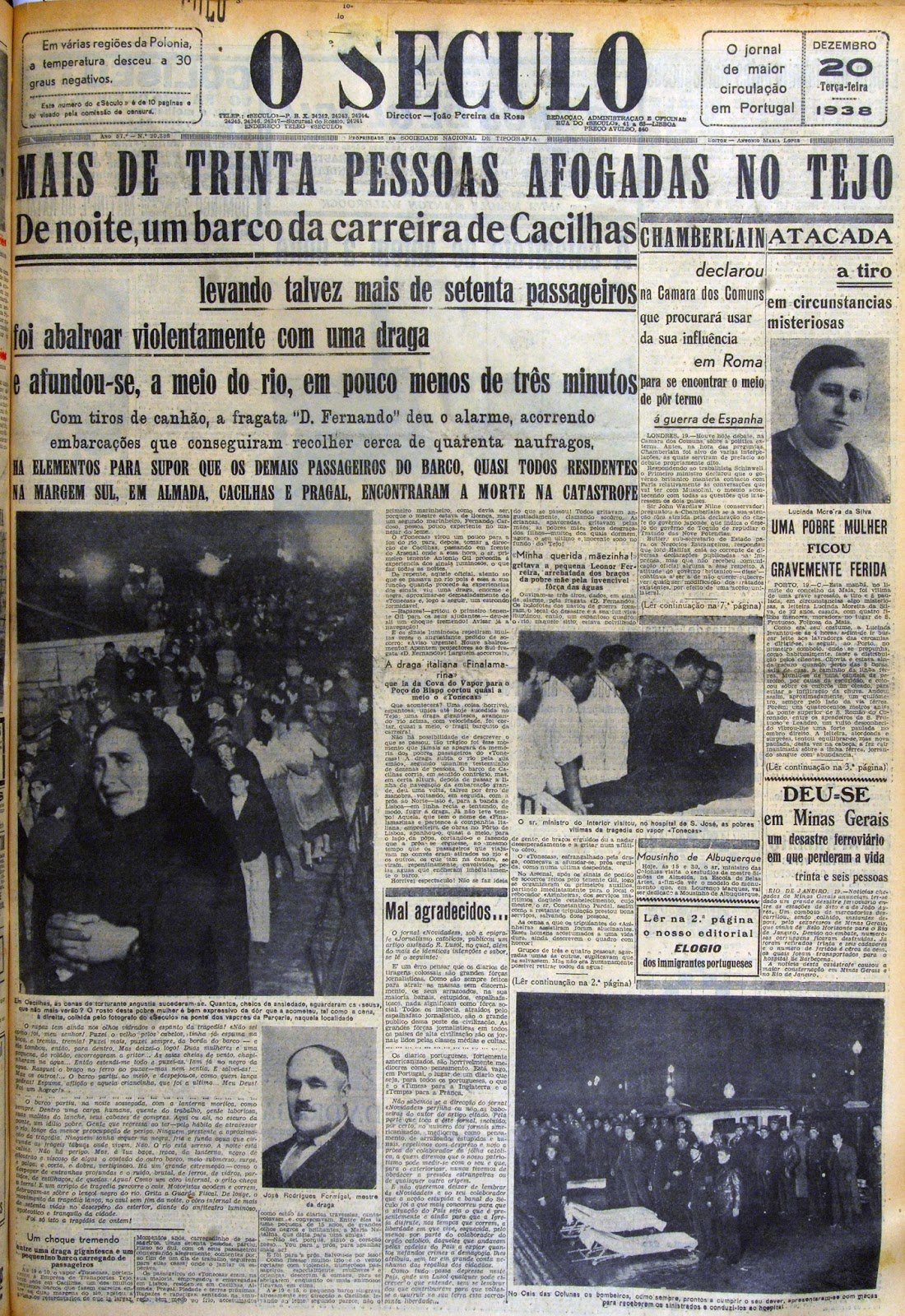 Da grande cobertura noticiosa dispensada ao acontecimento mostramos a primeira página do jornal O Século.